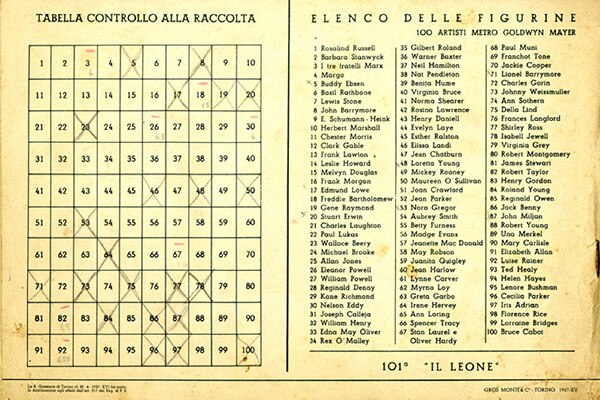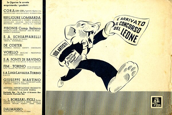 The company name - Luigi Lavazza - appears in the booklet for the “Concorso del Leone” figurine collection (1937), alongside those of other companies also involved in the initiative.